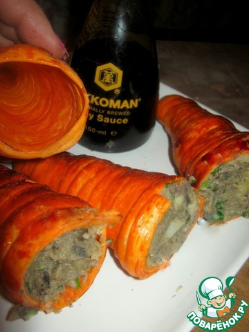 | Закуска «Морковь» - очень оригинальная закуска, прошу к столу! Закуска скорее оригинальная, но если начинку приготовить вкусной - то и закуска будет роскошной. Что мы сейчас и сделаем!! Однако главное здесь, тем не менее - это внешний вид. А он - очень оригинальный и необычный. А главное - просто, без никаких особых хлопот. |