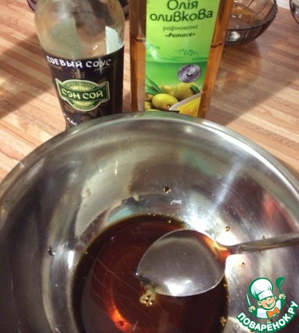 Делаем маринад. Смешиваем соевый соус, перцы, масло.
