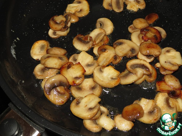 Растопить сливочное масло в сковороде. Выложить нарезанные грибы