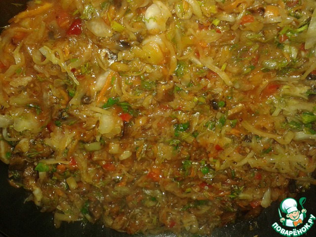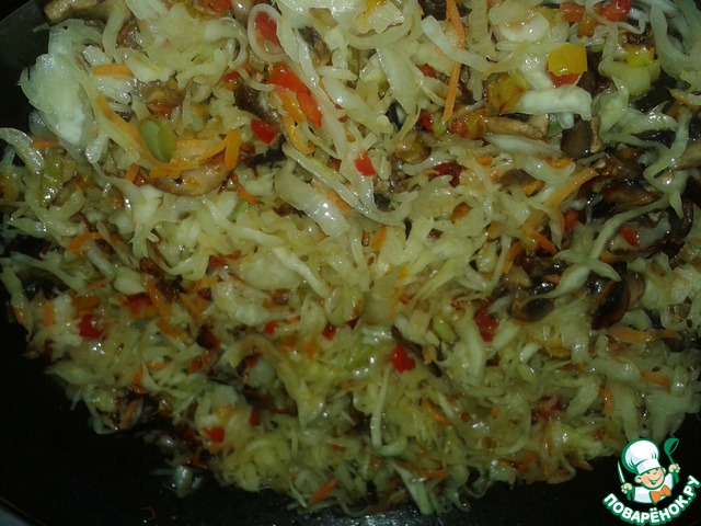 | Не знаю, как это блюдо назвать. Это и не солянка, но готовится с квашеной капустой. Предлагаю свой вариант блюда. Его можно есть как горячим, так и холодным. |
