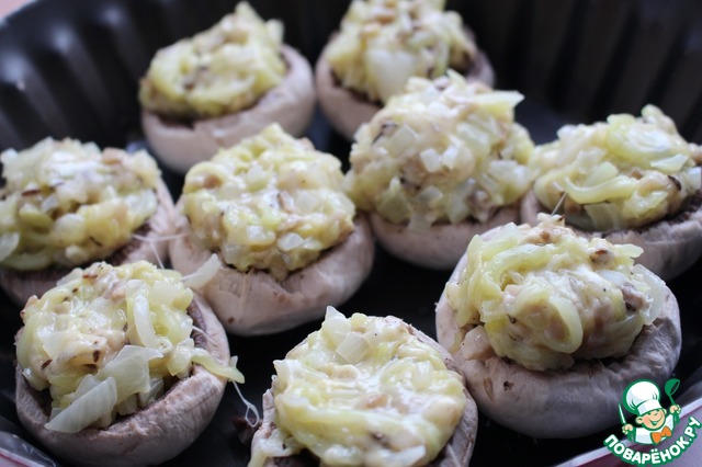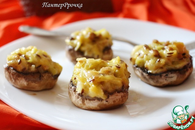 Шампиньоны, фаршированные кабачком с тмином и орехами