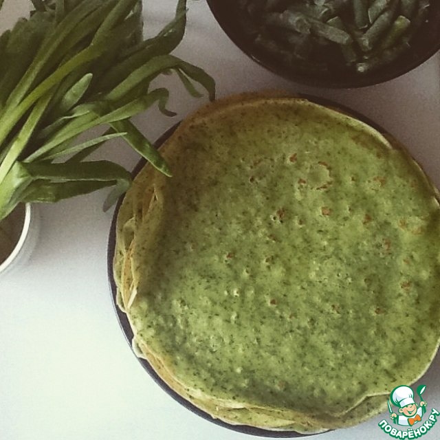 Шпинатные блинчики с грибамии и стручковой фасолью