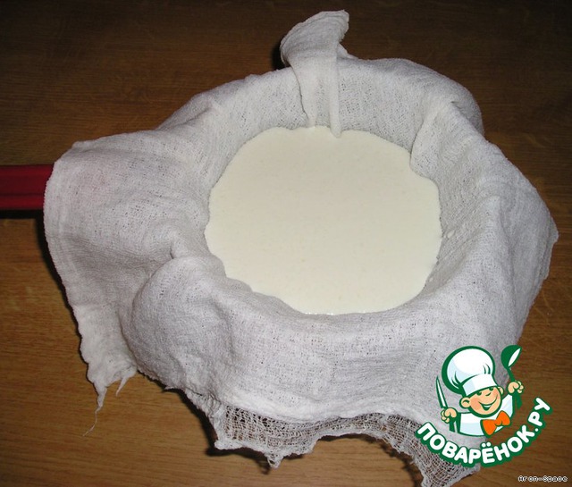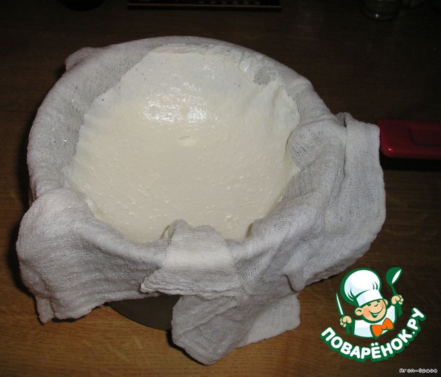 Не выбрасывайте стёкшую сыворотку! Её можно просто выпить, либо использовать в различных рецептах, например замесить на ней тесто, или сварить замечательный борщ.