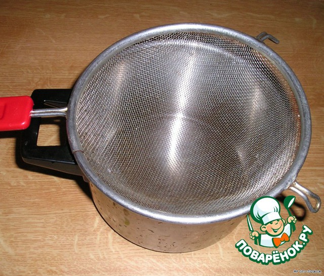 С йогуртом надеюсь разобрались, теперь давайте приготовим необходимую утварь. Нам понадобится кастрюля, в которую будет стекать сыворотка и дуршлаг.