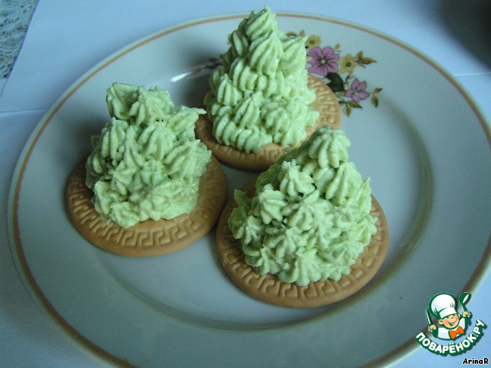 При помощи кондитерского шприца выдавливаем получившуюся массу на печенье