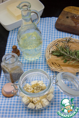 Скажу, что пропорции даны примерно, сколько масла возьмет, зависит от размера банки, плотности утрамбовки сыра и т. д. Травы - также зависит от ваших предпочтений, больше или меньше, как вам угодно.