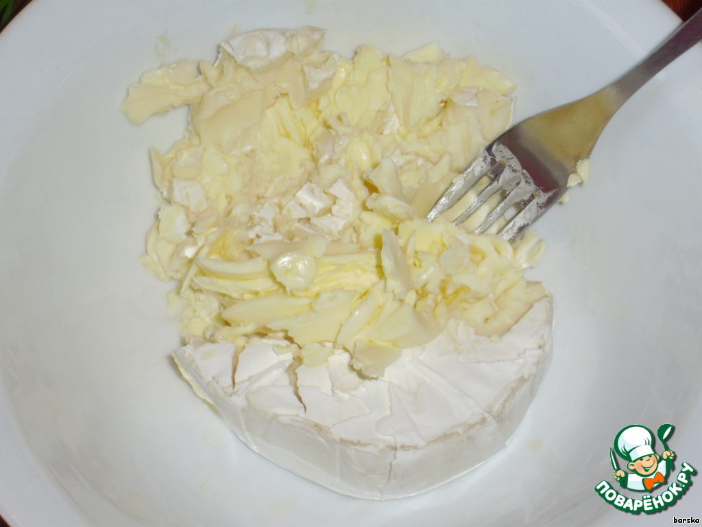 Размягчённое сливочное масло и камамбер размять вилкой.