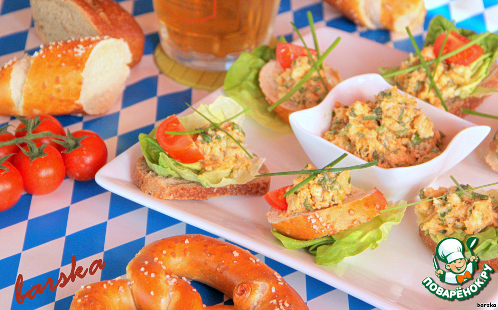 | Чем закусывают в мире пиво? - вот в чeм вопрос! В России под пиво идут "сухарики-чипсы-воб ла"... В некоторых странах, например, в Англии, считается, что пиво лучше вообще не закусывать. В Германии пиво закусывают сырными и колбасными изделиями, в Чехии любят пиво с тушеной и кислой капустой, галушками и "утопленниками" — маринованными в уксусе сардельками с луком, на Аляске лучшей пивной закуской считаются копченый лосось и медвежатина (я тоже не против!). Сегодня я хочу представить традиционную баварскую закуску к пиву - со знаменитого на весь мир пивного праздника - Октоберфест. |