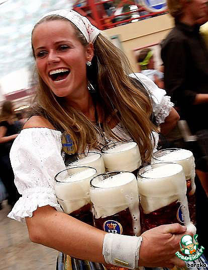 И с этого момента баварские девчата начинают свой бег в пивных палатках с тяжеленными пивными кружками от полудня и до полуночи (перевязывая себе запястья эластичными бинтами).