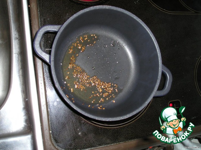 Выкладывам "Гхи" в сковороду (или кастрюлю с не пригорающим покрытием), ставим на большой огонь, высыпаем кумин и поджариваем его, постоянно помешивая, до золотисто-коричневого цвета. При поджаривании, кумин отдаёт весь свой чудесный аромат маслу- настоящее волшебство!