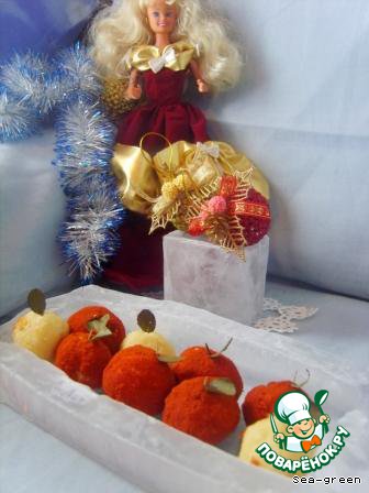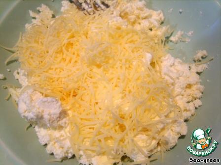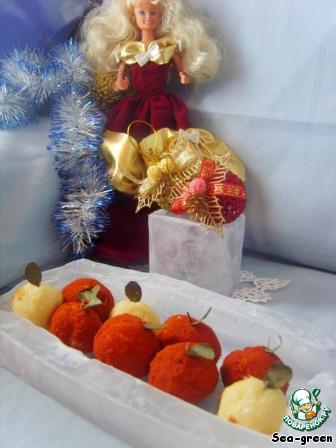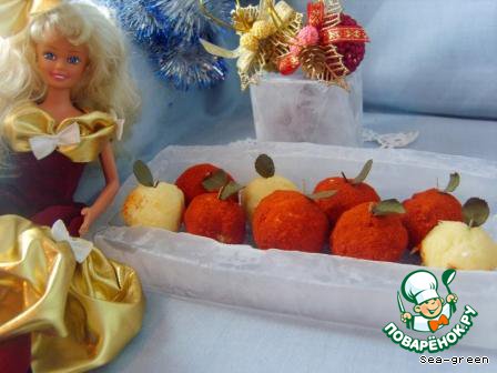 Теперь займемся одним видом "яблок". Для этого надо смешать творог, 2 - 3 ст. л. натертого сыра, измельченный зубчик чеснока и мягкое сливочное масло. Посолить и поперчить по вкусу.