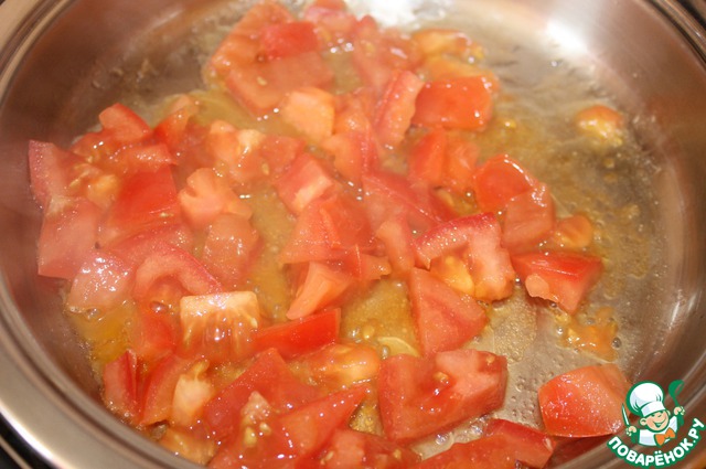Помидоры порезать и потушить с соевым соусом. Добавить сухой тимьян. Дать затем остыть.