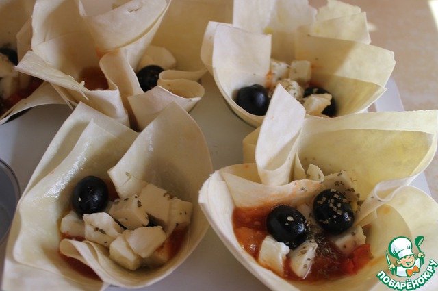 | В интернете нашла интересную закуску из лаваша, но у меня было тесто Фило и я решила поэкспериментировать. Получилось не плохо, но лучше все таки взять лаваш. Пишу рецепт как он был в оригинале. |