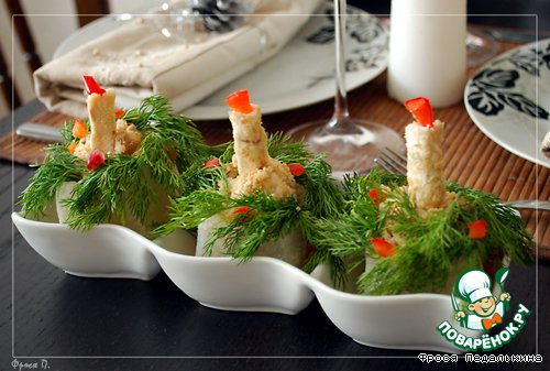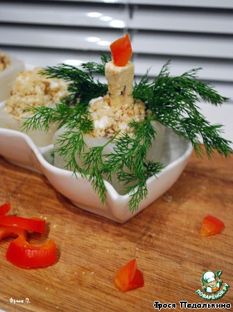 | Оригинальная сырная закуска с копченой скумбрией. Подсвечники тоже съедобны и сделаны из... На конкурс "Gorenje: новогодняя композиция" |