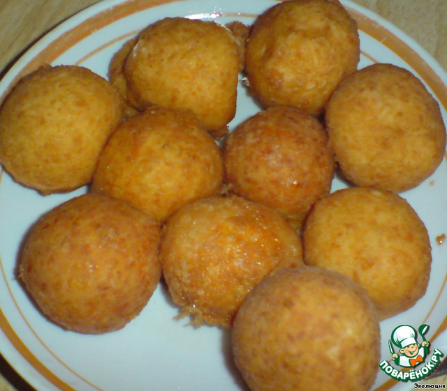 Опять же катаем шарики, обваливаем их в муке и обжариваем в растительном масле.