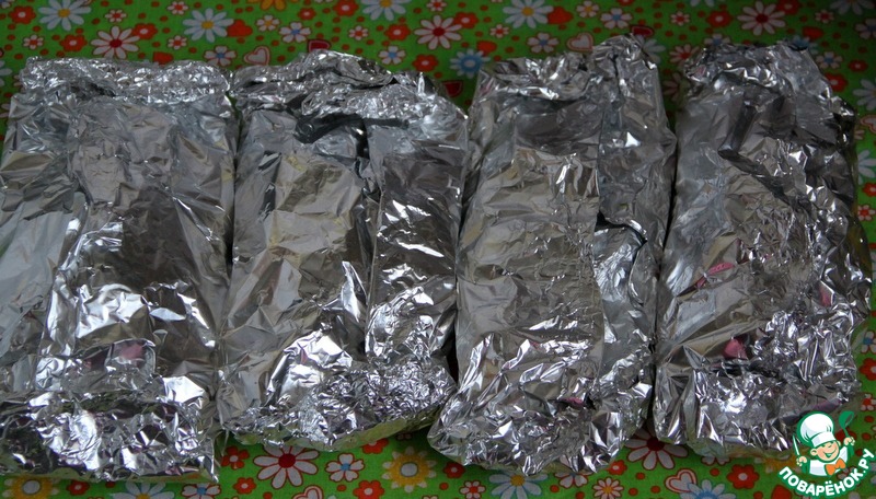 *запекать в духовке при 200 *С 15 мин, затем приоткрыть фольгу и на максимуме 5-10 мин.
