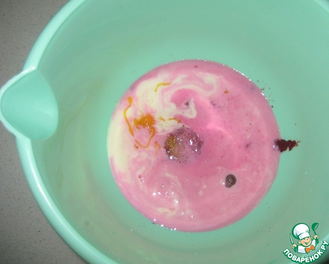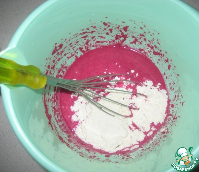 Вареную свеклу перемолоть блендером. Добавить ряженку, половинку молока, яйцо, соль и сахар. Хорошо взбить.