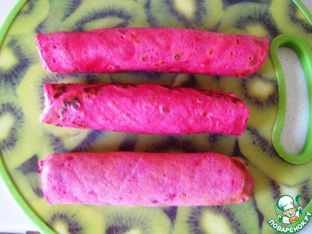 Плотно заворачиваем блинчик рулетом и даем постоять, чтобы начинка "склеилась".