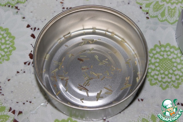Берем формочку (я делала в "родной" из под сыра). На дно кладём несколько иголочек свежего розмарина. За неимением свежего, я использовала сухой.