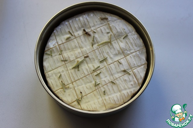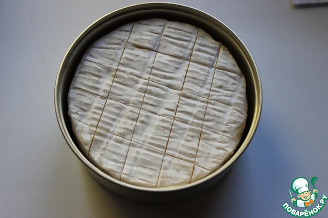 Сверху кладем сыр "Бри", предварительно сделав на нем неглубокие насечки.