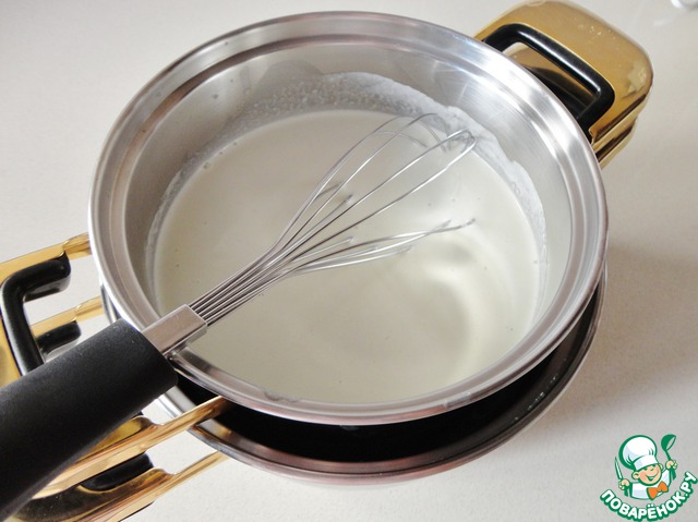 Для того, чтобы масса остыла быстрее, можно сделать холодную водяную баню. Периодически помешиваем, чтобы не образовалась пленка.