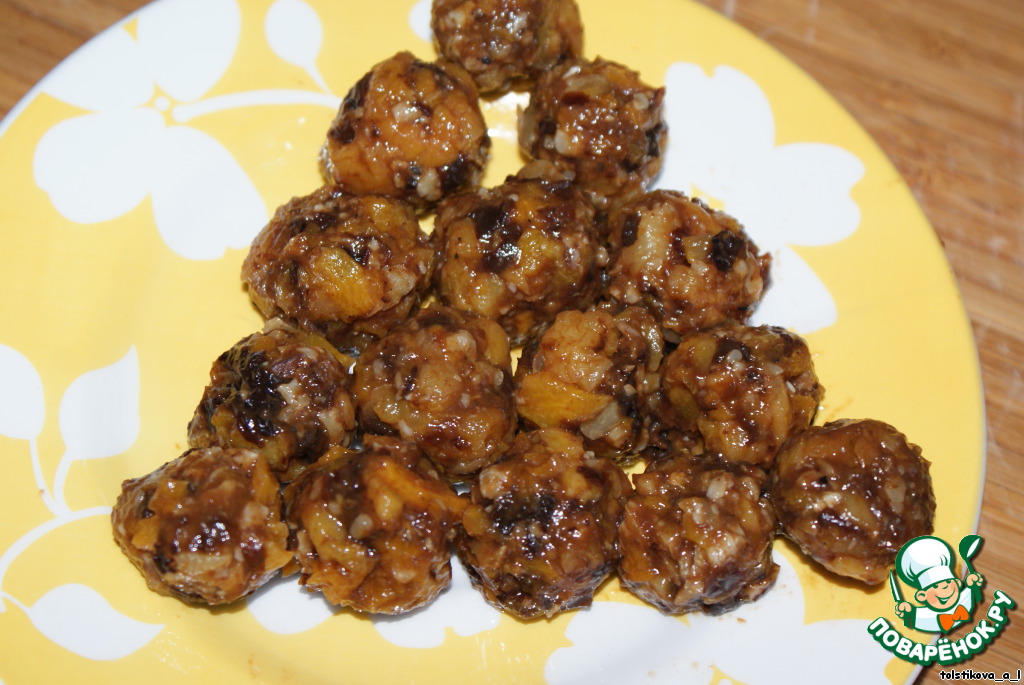 Из кураги и чернослива скатать небольшие шарики, которые "послужат" дальше начинкой