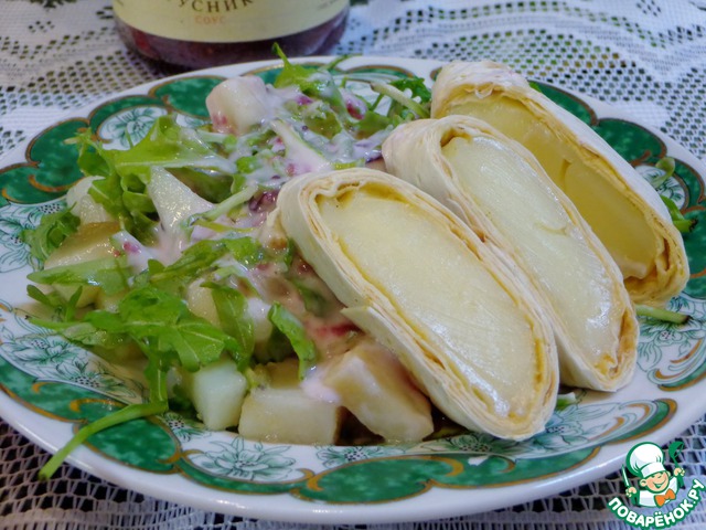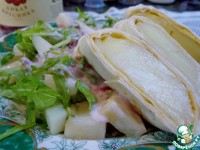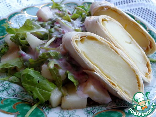 | Отличная закуска для любителей сыра. Готовится очень быстро, смотрится оригинально. По своей сути сочетает в себе и закуску, и салат под клюквенно-йогуртовым соусом. |