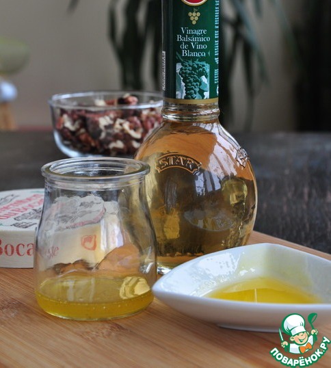 Подавать с багетом, поливая оливково-медовым соусом.