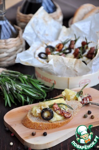 Камамбер запеченный с розмарином, орехами, маслинами и оливковым маслом