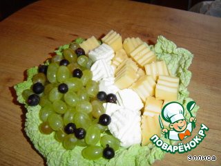 | Такой вариант подачи сыра я подсмотрела в США. Перед едой гостям предлагают вино и разные сорта сыра в сочетании с виноградом и солеными крекерами |