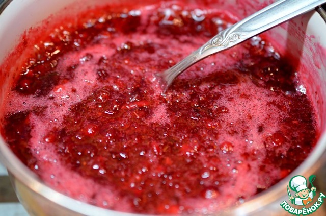 Бруснику помыть, обсушить. К 150 г ягод добавить 2 ст. л. сахара, измельчить блендером, дать закипеть, прокипятить 3 минуты. Затем остудить. У нас получилось что-то вроде брусничного варенья.