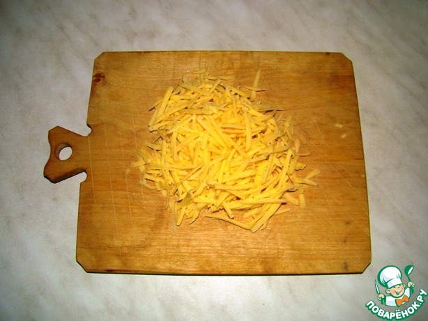 Вводим натертый на крупной терке сыр.