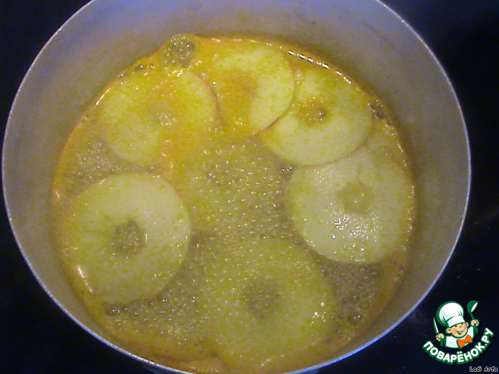 У яблок удалить сердцевину и нарезать на тонкие кругляши.