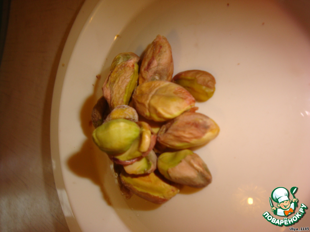 Их полученной массы скатать шарики, внутрь каждого положить по одной фисташке. Обвалять шарики в кокосовой стружке: если в белой, то будут рафаэлки, если, как у меня, в голубой - то васильки.