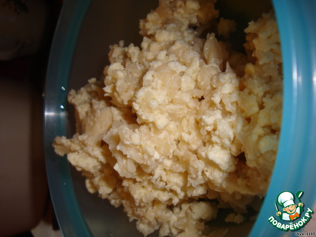 В полученную массу добавить чеснок, пропущенный через чеснокодавилку, и хорошо перемешать.