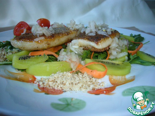 | В поисках оригинального, но не сложного рецепта с плодами киви я наткнулась на несколько листочков выдернутых из журнала "Лиза" (год выпуска не установила). Один из напечатанных рецептов меня заинтересовал. Приготовила на ужин, с некоторым волнением ждала возвращения мужа, думая про себя, что, если будет несъедобно, разогрею картофельное пюре. Но то, что получилось, было очень вкусно. Свежие, кисловатые нотки киви и заправки сочетались с необычным вкусом сыра в ореховой панировке. Это блюдо украсит любой праздничный стол, придаст яркости и свежести. |