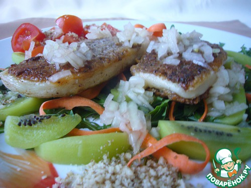 Запеченный козий сыр с гарниром из овощей и фруктов