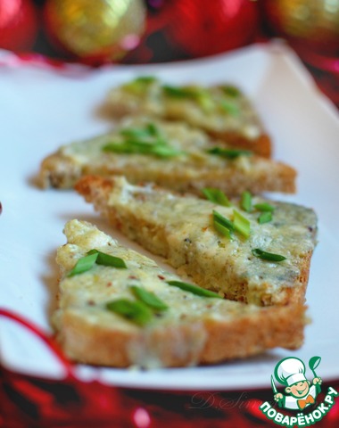 Тосты с пармезаном, голубым сыром и зеленым луком