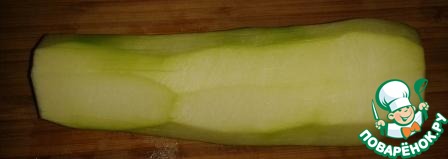 Итак. Достаём из мешка кабачок. Он должен быть этаким кабачковым подростком или дитём. Вообще, кабачки лучше снимать молодыми. Так они вкуснее. Скажем прямо, так их меньше.