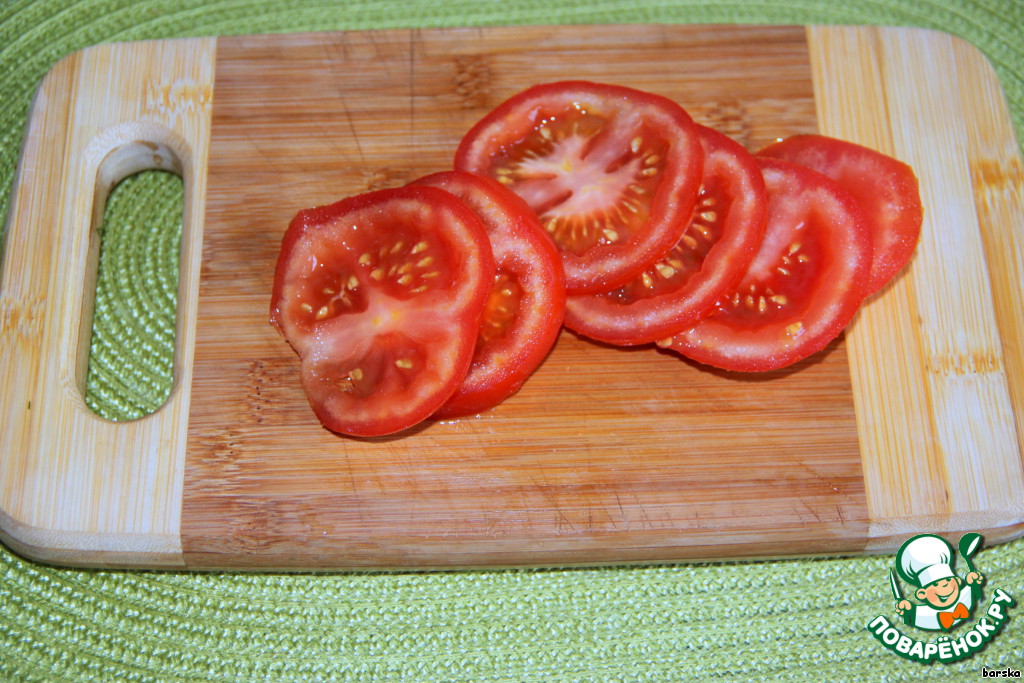 Помидоры нарезать кольцами.