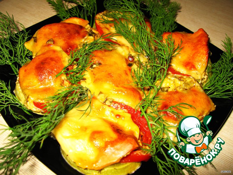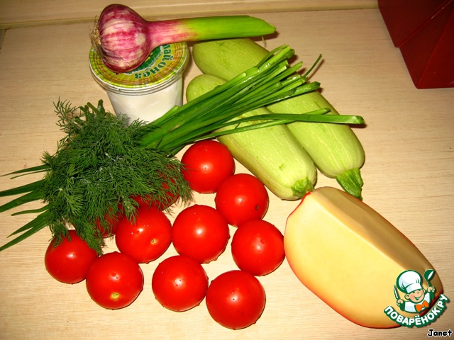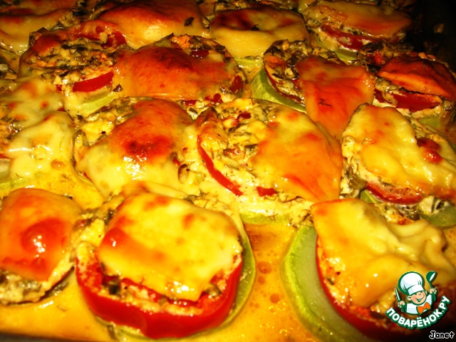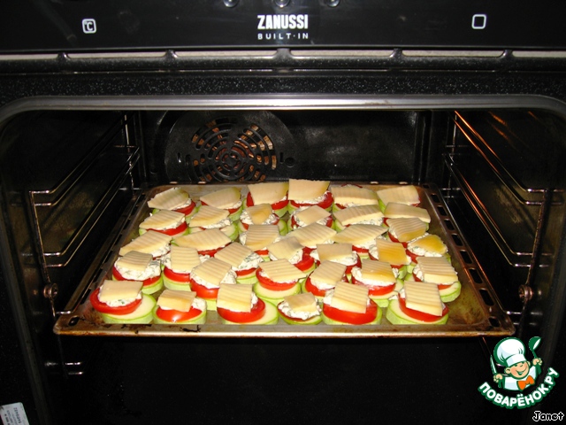 | Вот такое красивое название мне захотелось дать моей закусочке! Просто хорошее настроение!!! И всем поварятам желаю такого же замечательного!!! Овощная закуска готовится в духовке, никакой предварительной подготовки!!! Очень сочно, вкусно и быстро!!! Овощи под соусом и сырочек запекаются очень быстро. Приготовление за 30 минут. |
