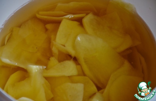 Положить в неё картофель и оставить на 1 час. На этом этапе картофель впитывает соль.