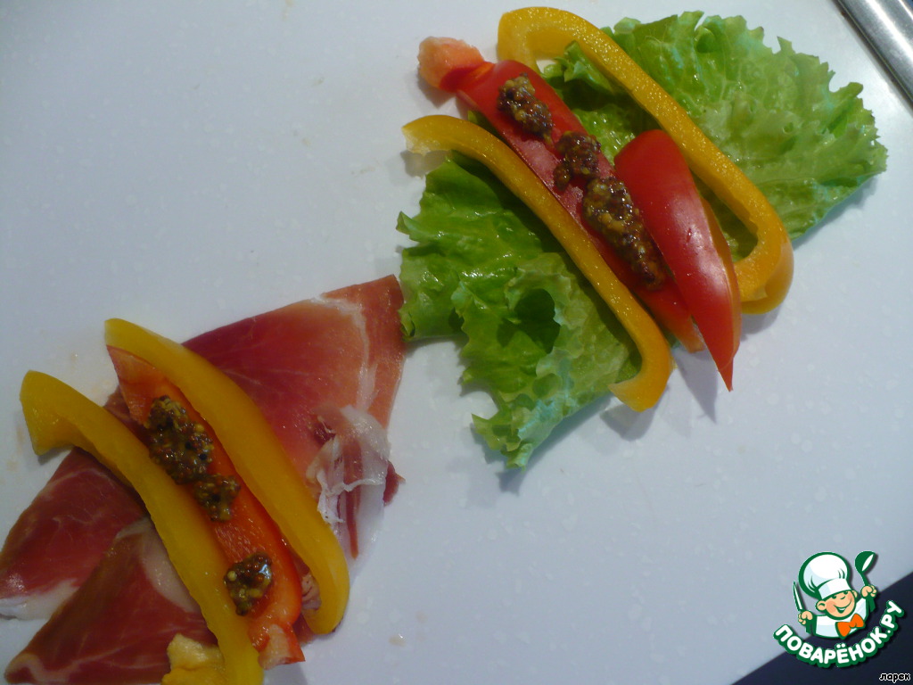 | Ну ооочень быстрое блюдо из серии "Гости на пороге - срочно нужен закусон". Для приготовления нужен лишь кусочек сыра, остальное - на ваш вкус и бюджет, конечно. |