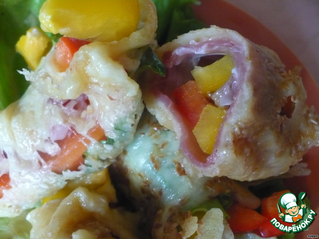 Как только расплавится - снимаем сковороду с огня и ждем, пока начнет схватываться. Не до полного остывания, иначе не завернете! Кладем ту композицию, которую вы уже сваяли перед этим и заворачиваем.