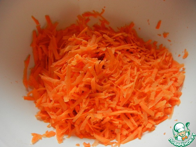 Морковь очищаем и натираем на средней терке. Затем обжариваем на сливочном масле около 5 минут и охлаждаем.
