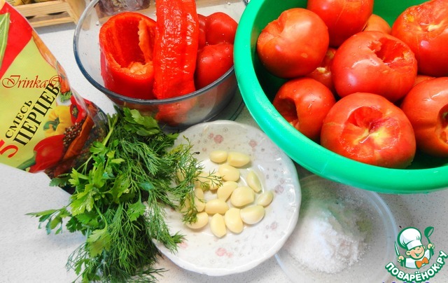 Крепкие спелые помидорки среднего размера, в количестве двух кг, моем и вырезаем у "попки" ямочку.