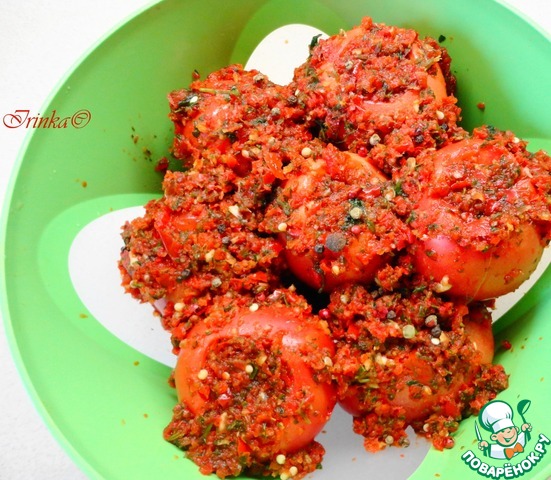 | Сногсшибательные помидорчики для любителей острятинки! Очень хороши на закуску! Вызывают аппетит даже у привередливых детей-проверено! Кстати, эту закусочку можно приготовить даже из невнятных парниковых овощей-все рано будет вкусно. |