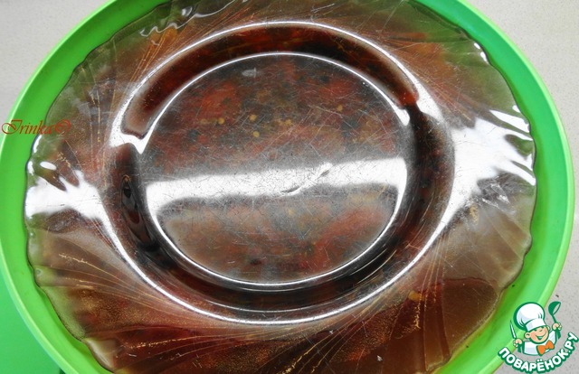 Сверху кладем тарелочку и слегка придавливаем. Можно накрыть крышкой.