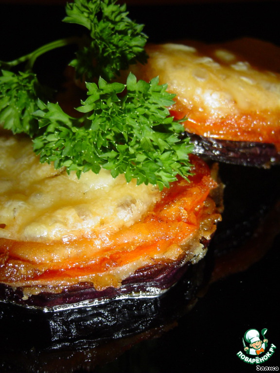 | В этой закуске очень удачно сочетаются баклажаны, помидоры, сыр и чеснок, она может стать изюминкой обеда на природе! |