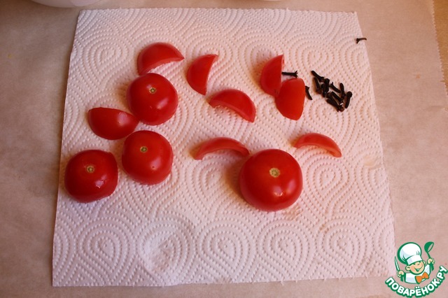 Перевернем помидоры на салфетку и дадим стечь соку.